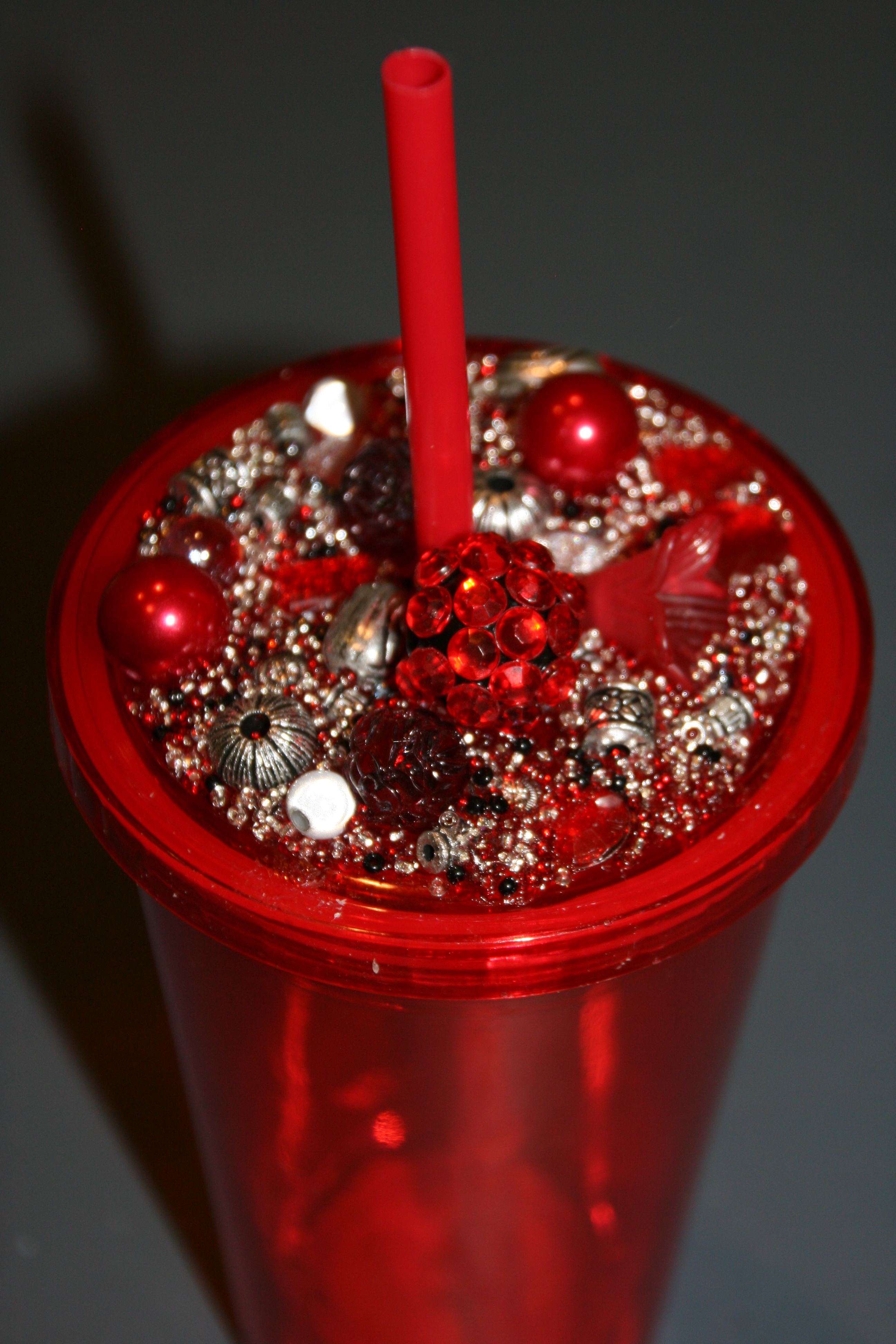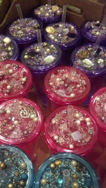 I have become a HUGE fan of insulated cups. They are great because they keep your drink cold, AND they don’t sweat and make a big puddle. I found insulated cups in numerous colors at both The Dollar Tree & The 99cent store. I thought, WHAT A GREAT GIFT IDEA!!! I filled my cart with cups and went bead shopping.
