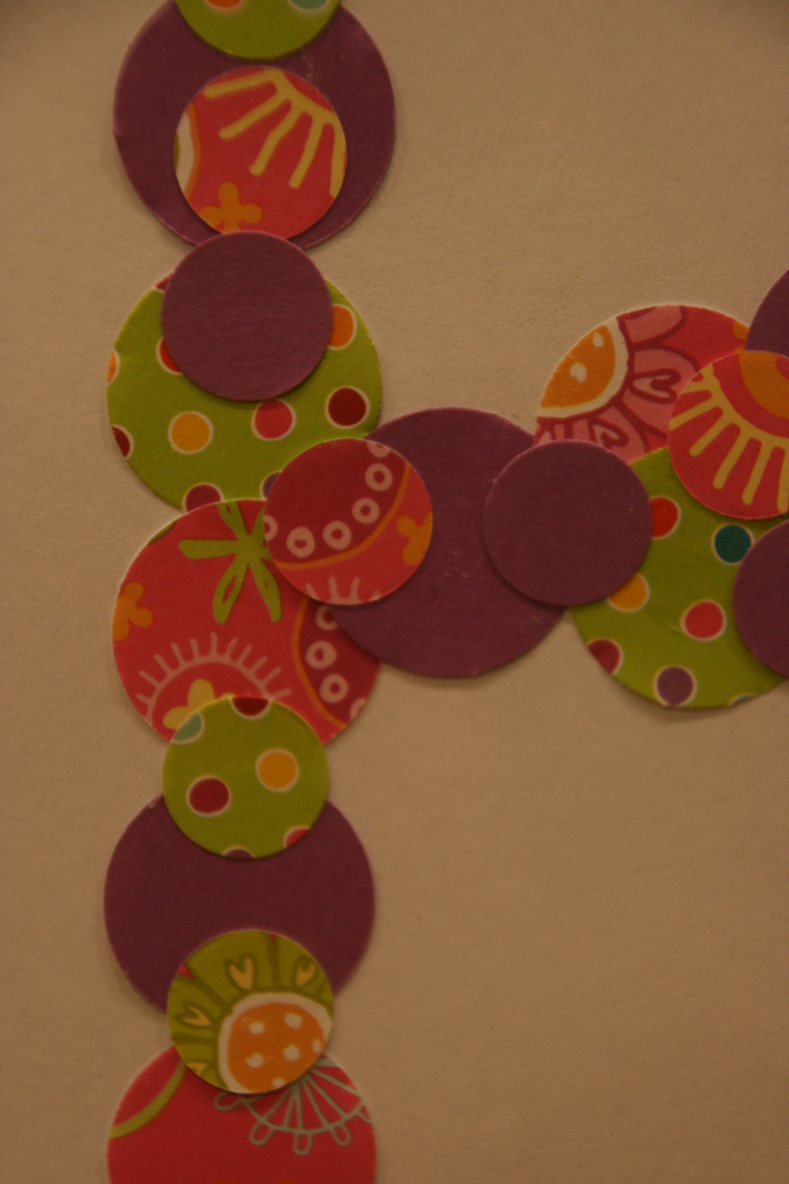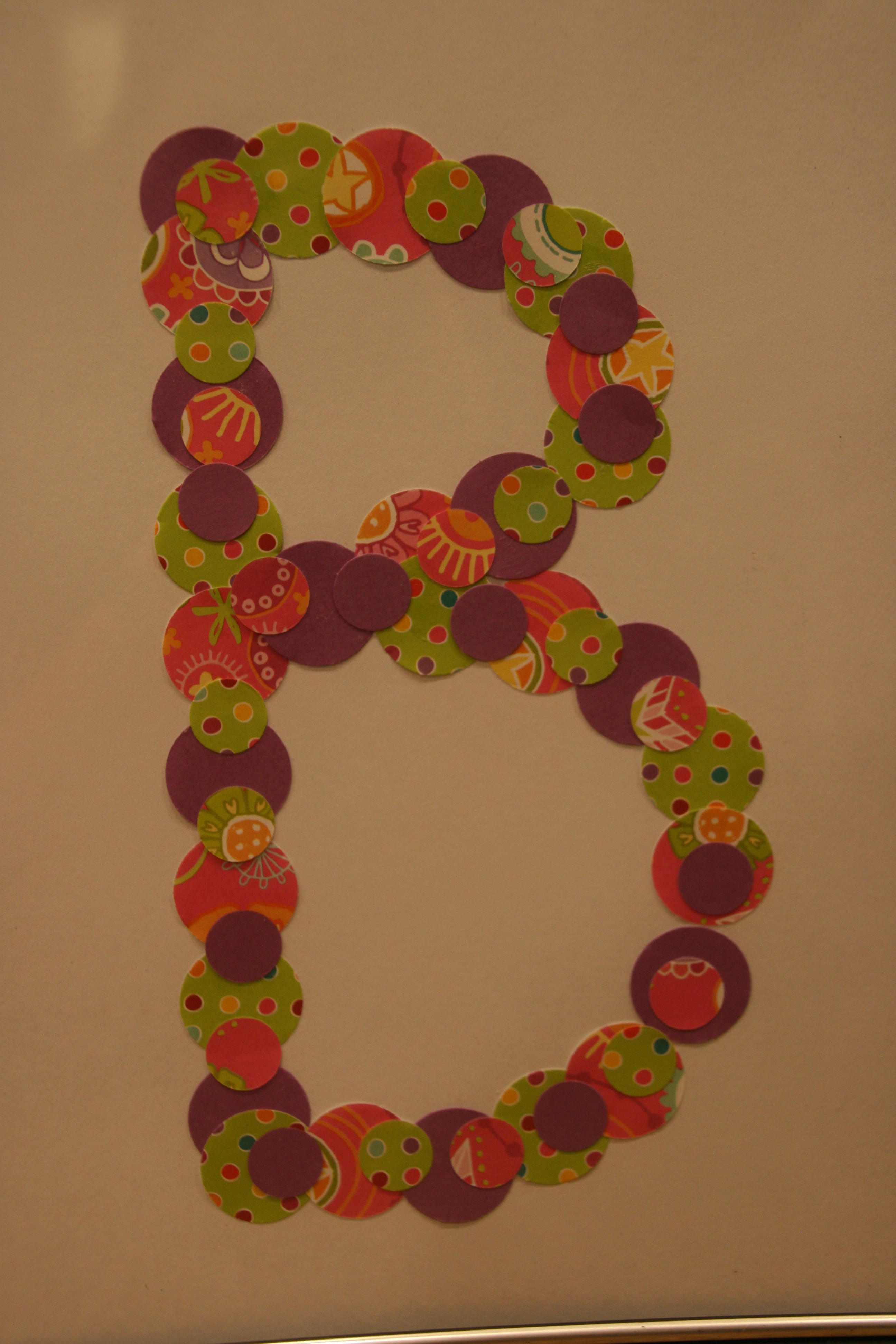 Glue the circles on the cardstock in the shape of the initial. I started with the large circles, then overlapped with the smaller ones.