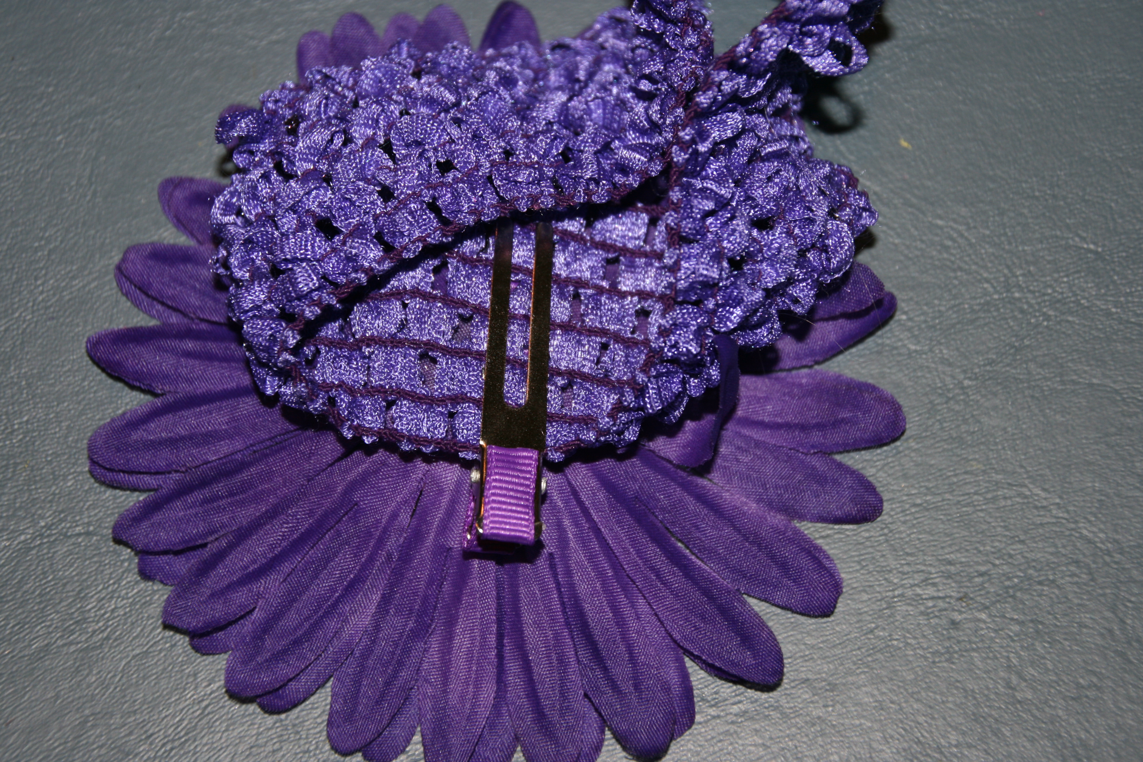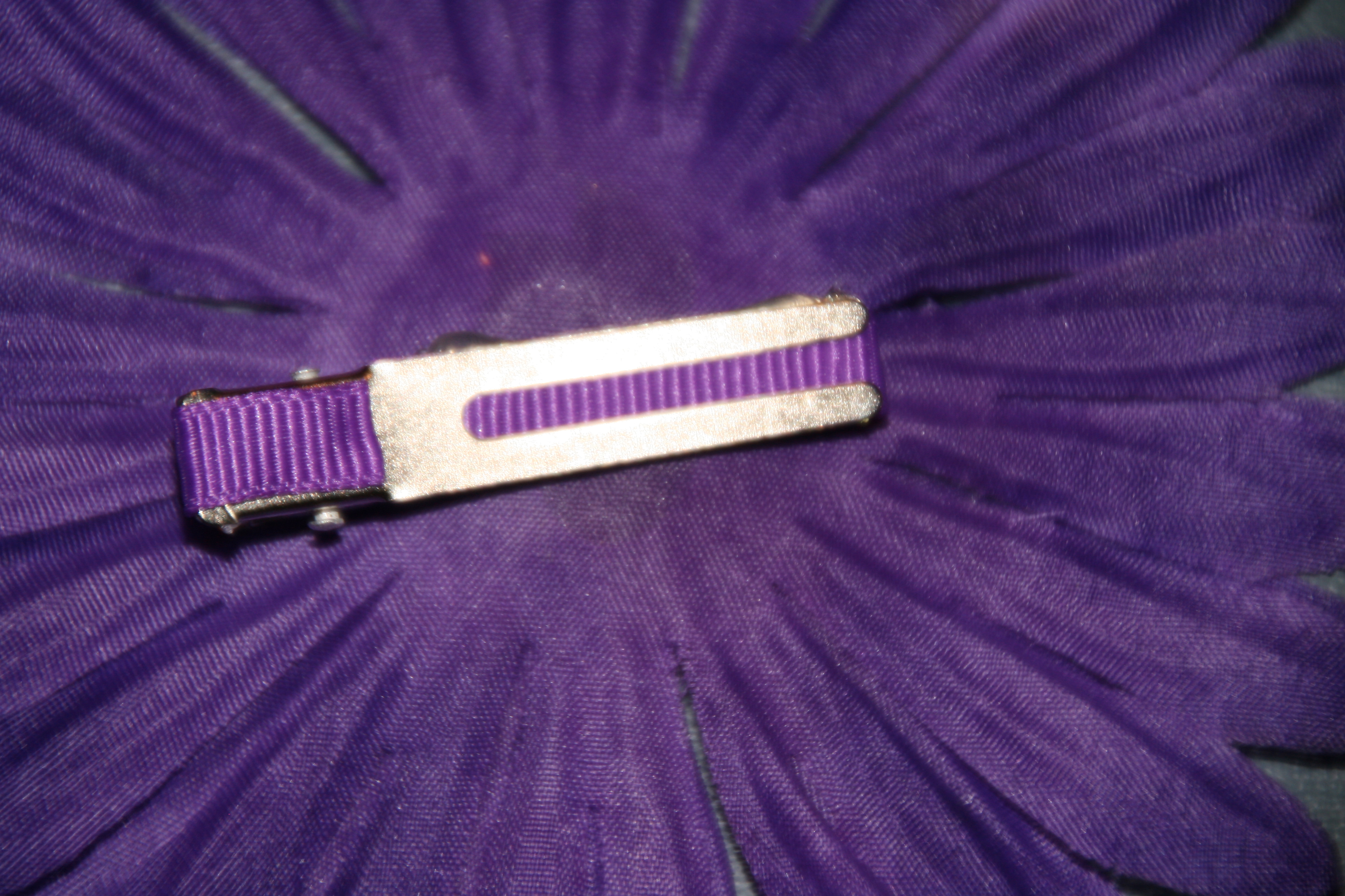 Now glue the flower onto the top of the clip covered in ribbon, one piece at a time.