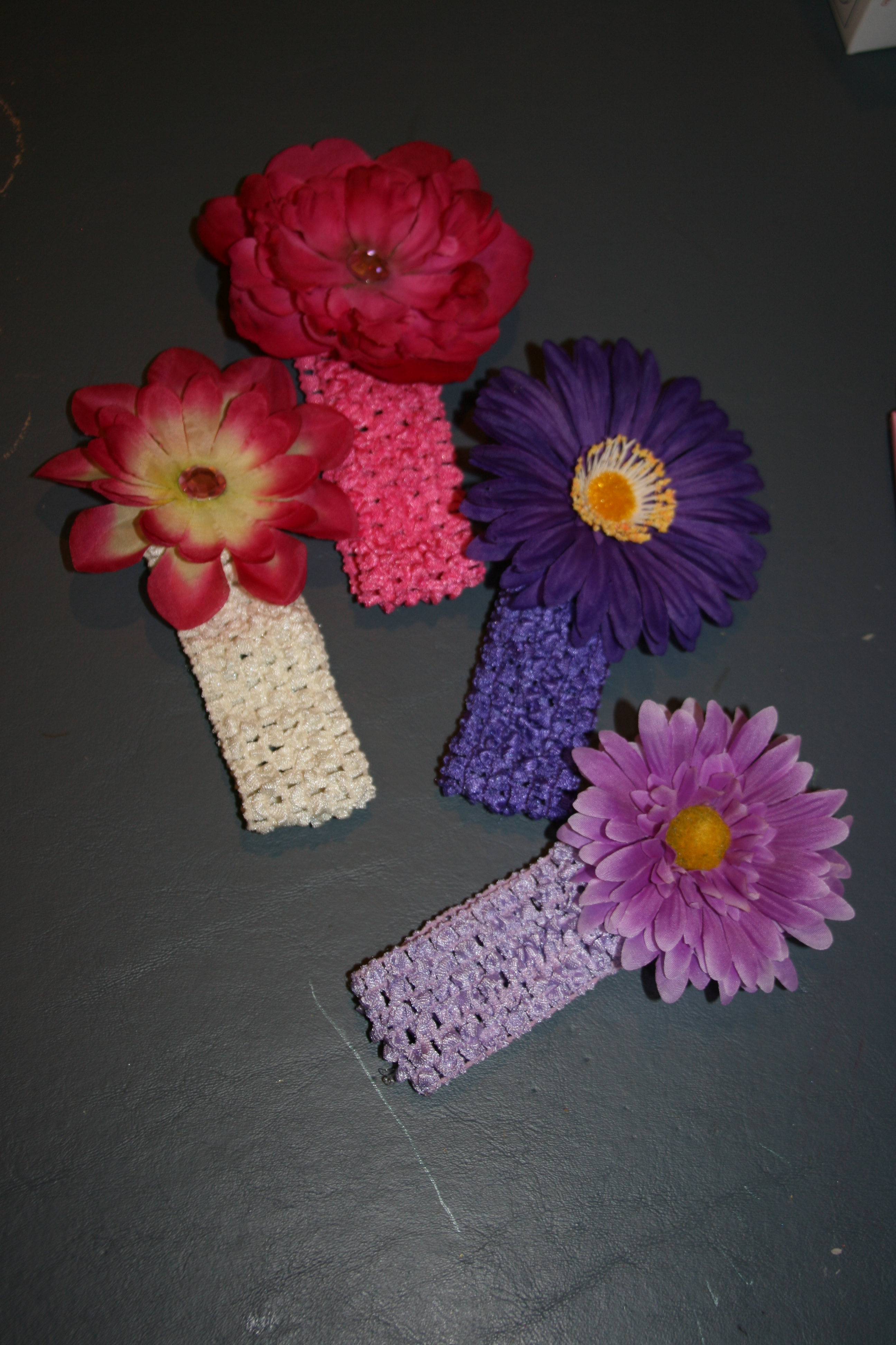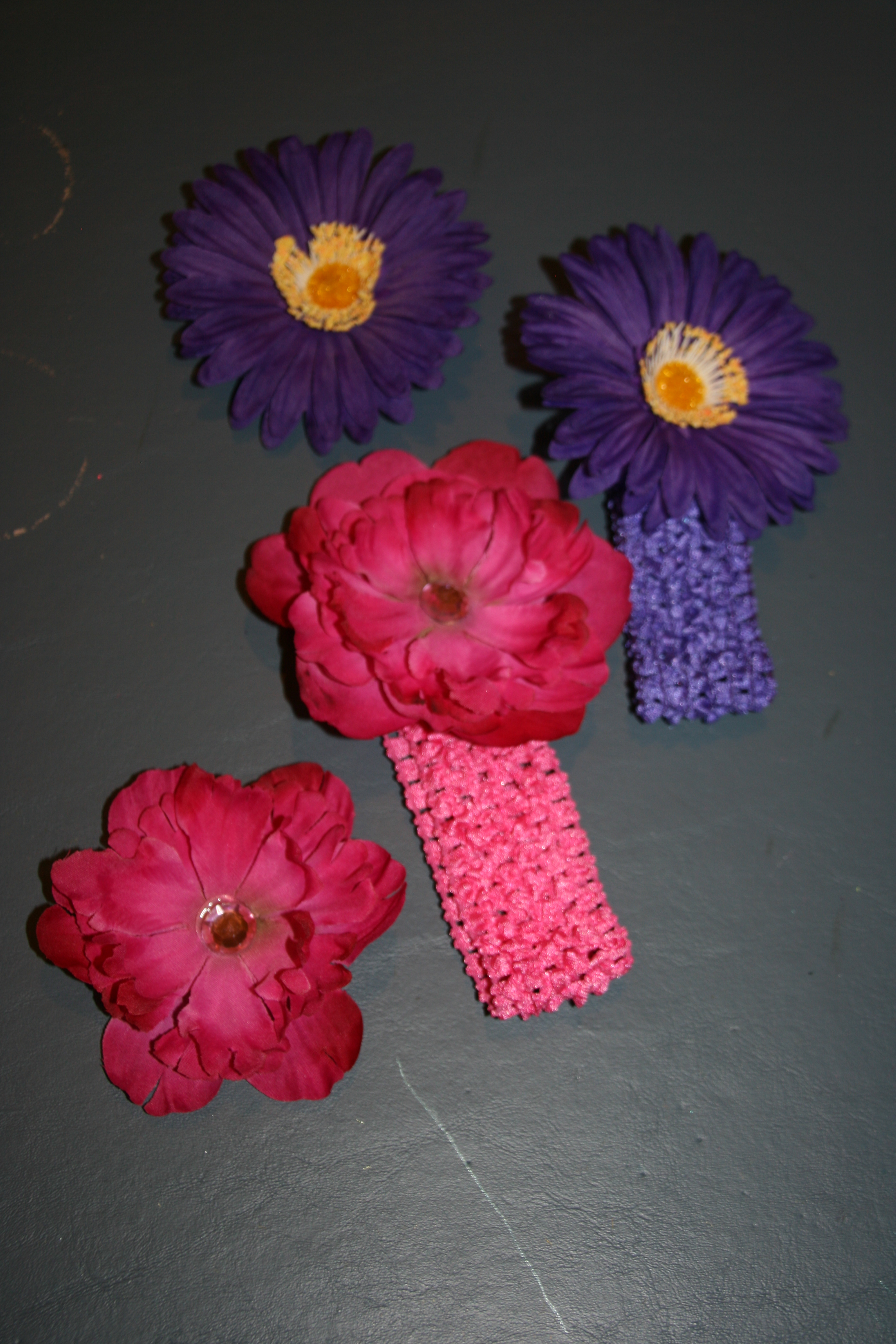 You will need fake flowers (I buy them at the Dollar Tree), ribbon, clips (I purchased these at Sally’s Beauty), hot glue gun, and rhinestones as embellishments. I will also show you how to make these for infants.