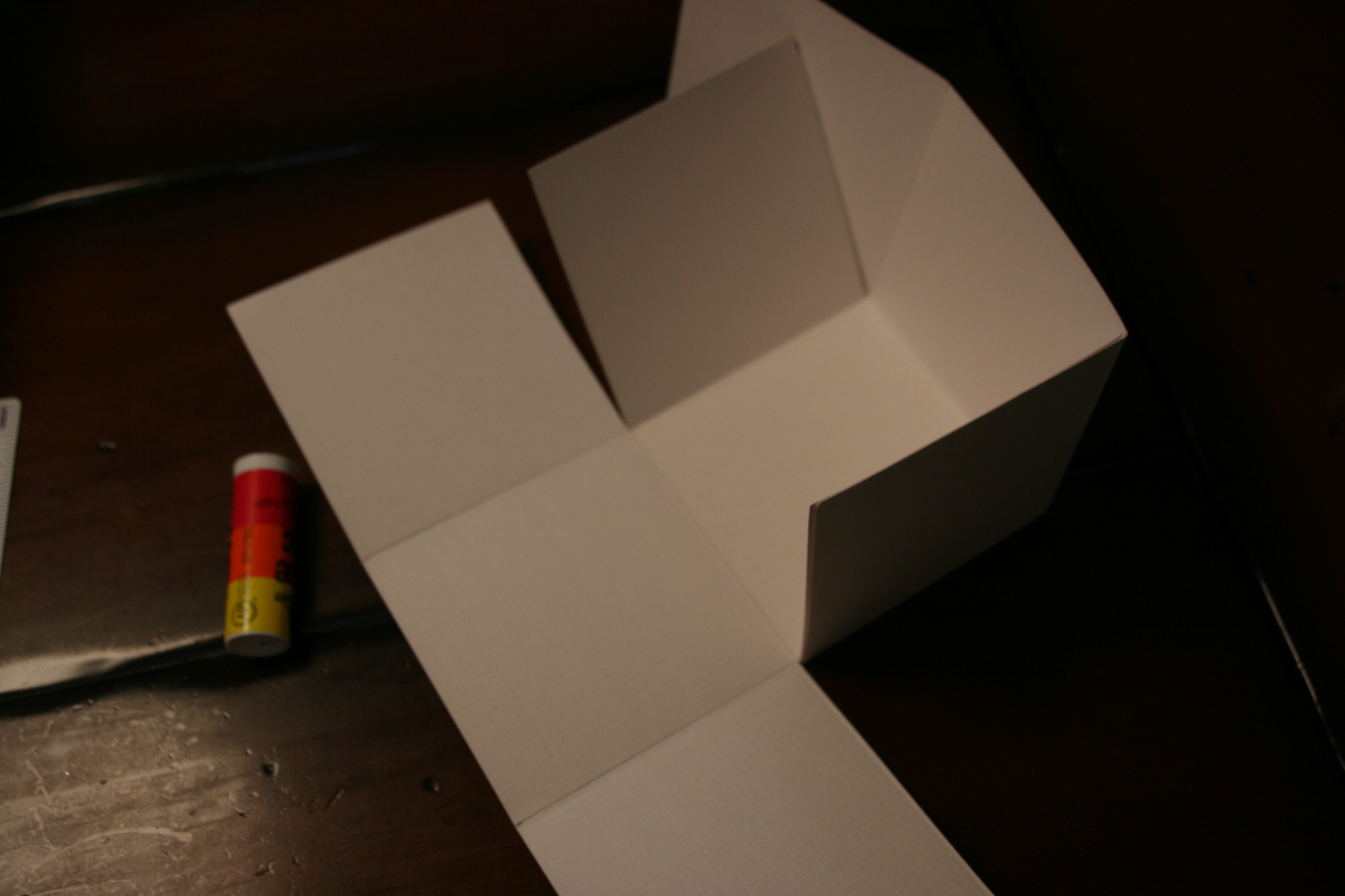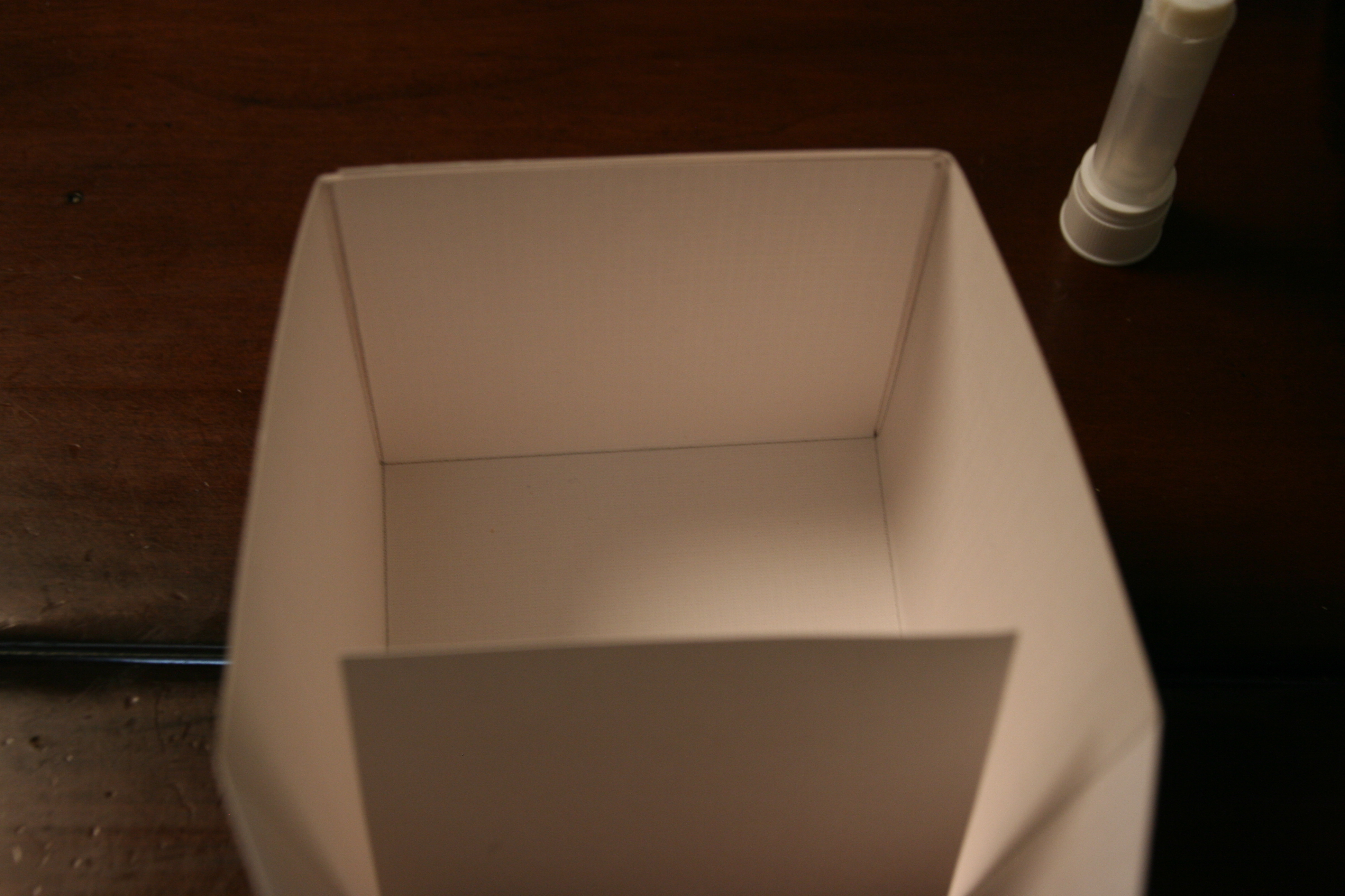 You have now created one side of the box. Repeat the entire process with a second piece of paper to form the entire box. I prefer to use Cardstock for the bottom, and decorative scrapbook paper for the top. The cardstock makes the box more stiff.