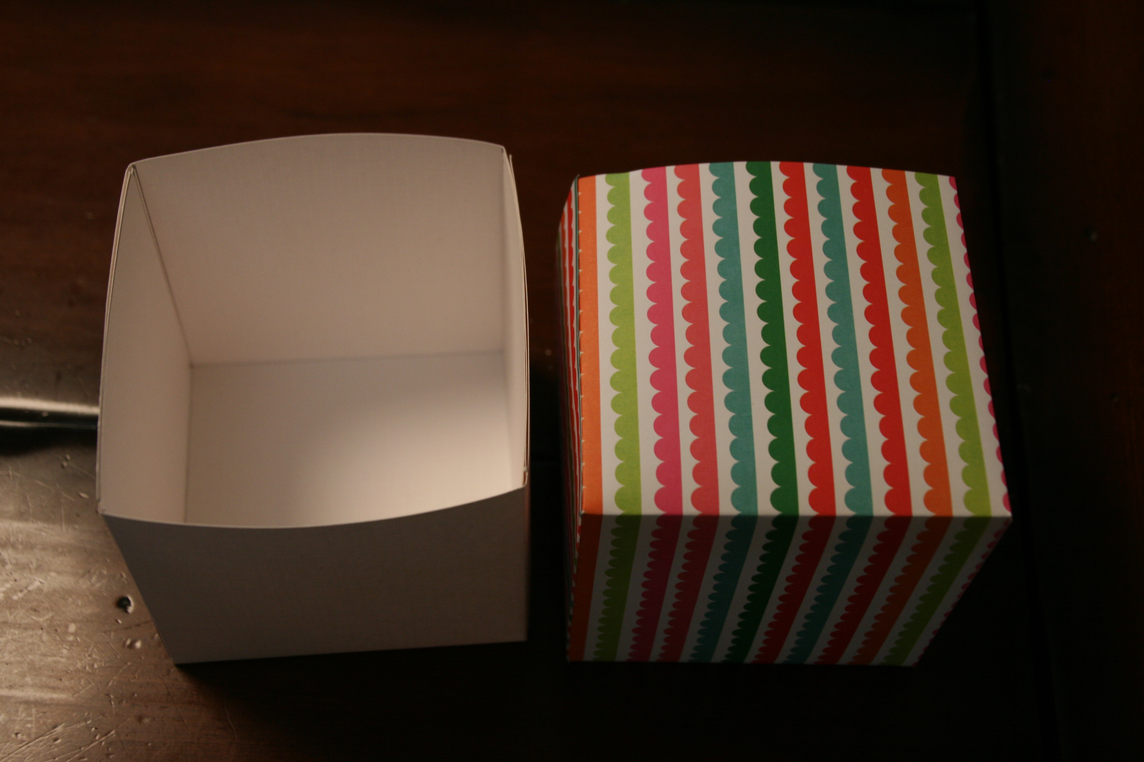 Gently put the lid onto the bottom and you have a 4×4″cube box.