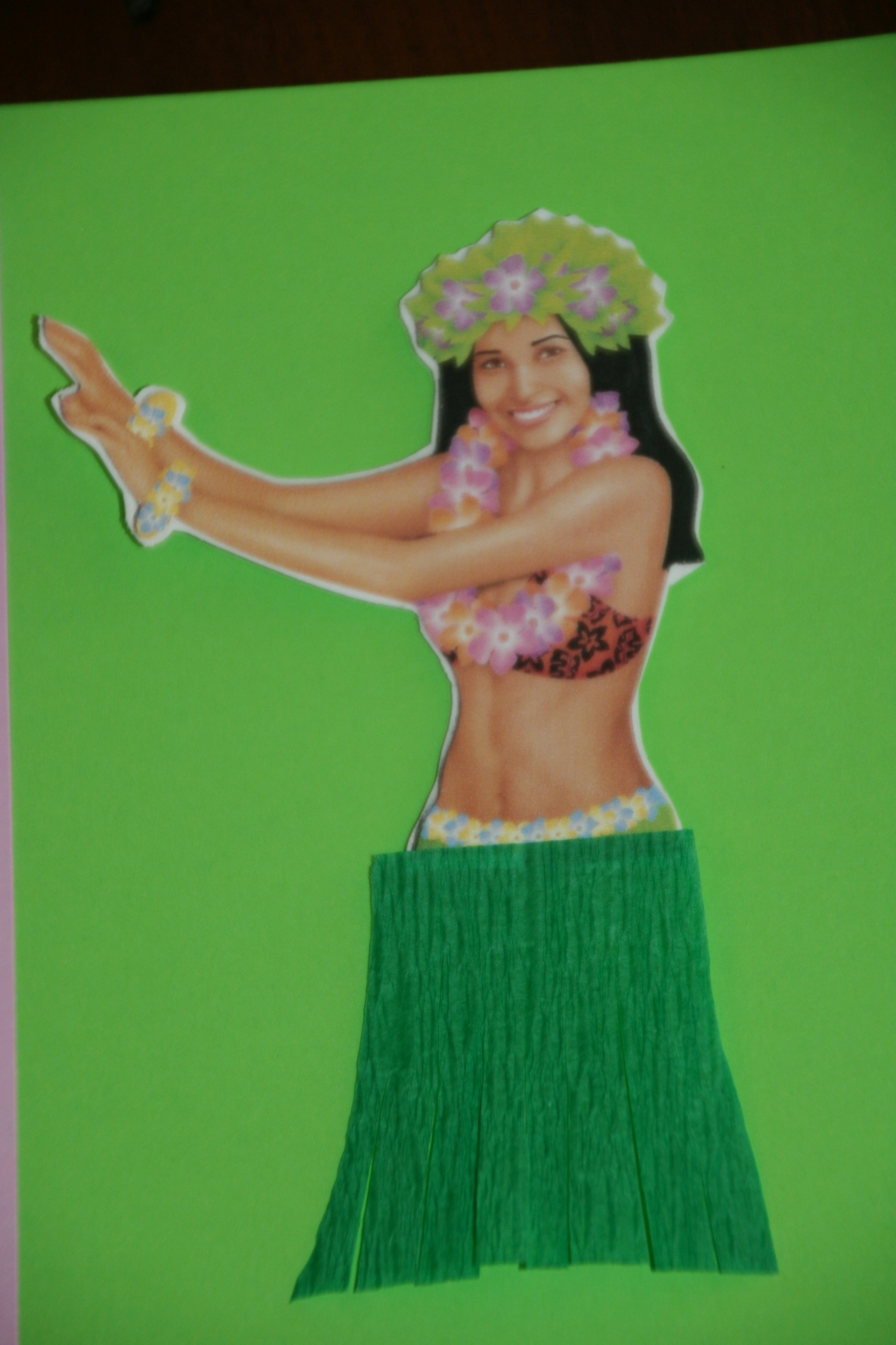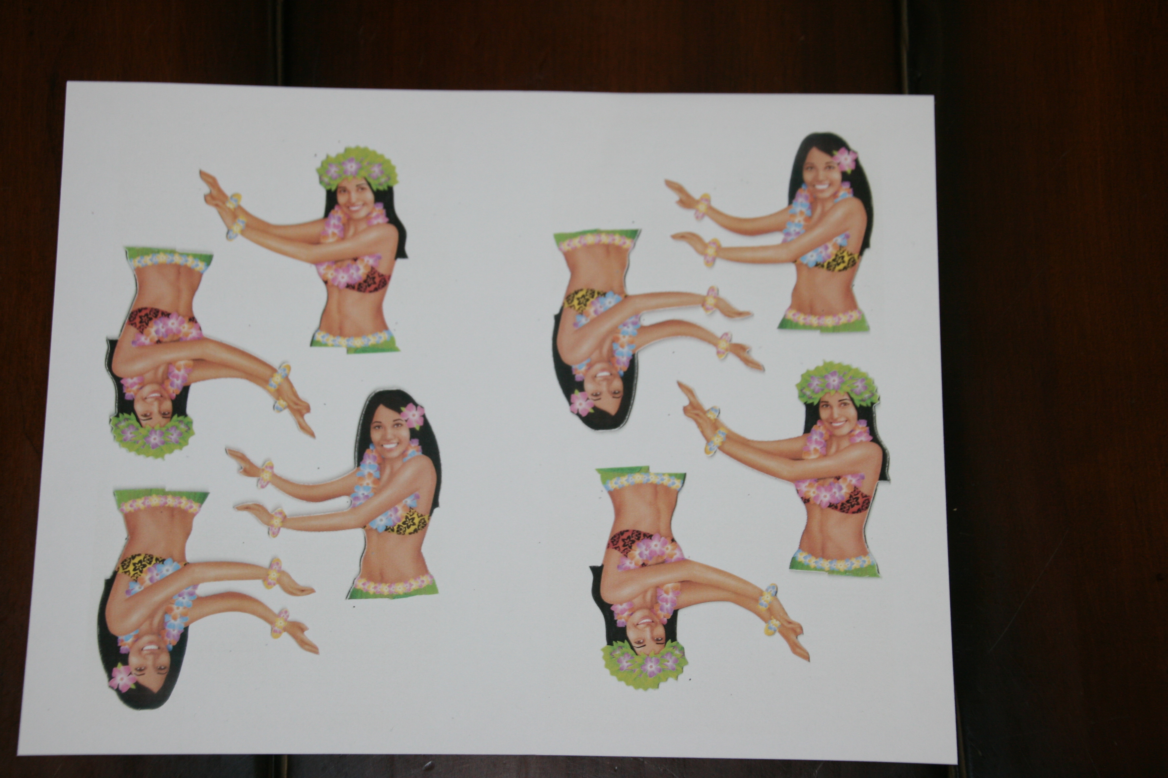 I then made color copies onto white cardstock and cut out each Hula Girl.
