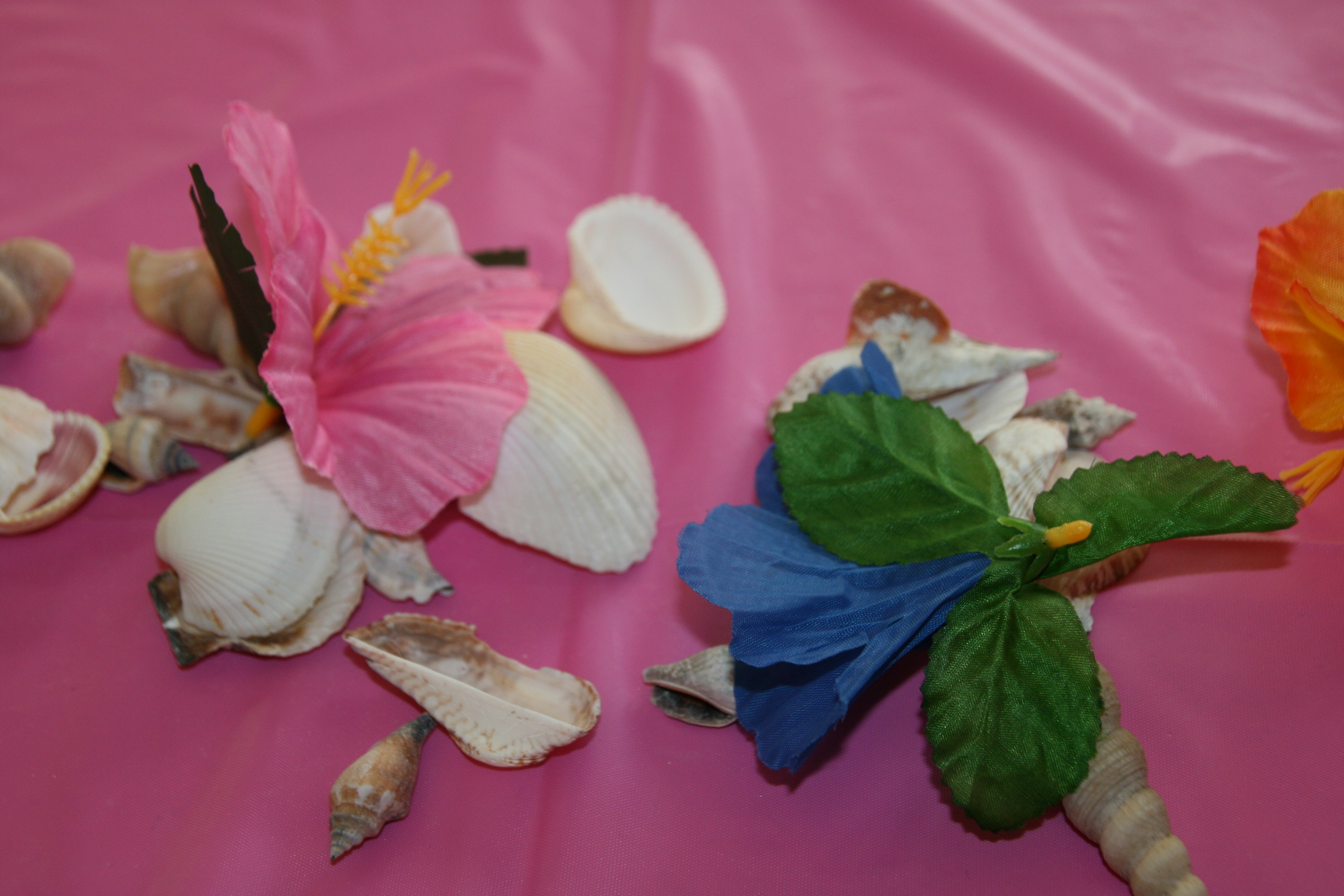 The food table had buckets filled with clean cat litter and bright spiral candle sticks. I also scattered hibiscus flowers.