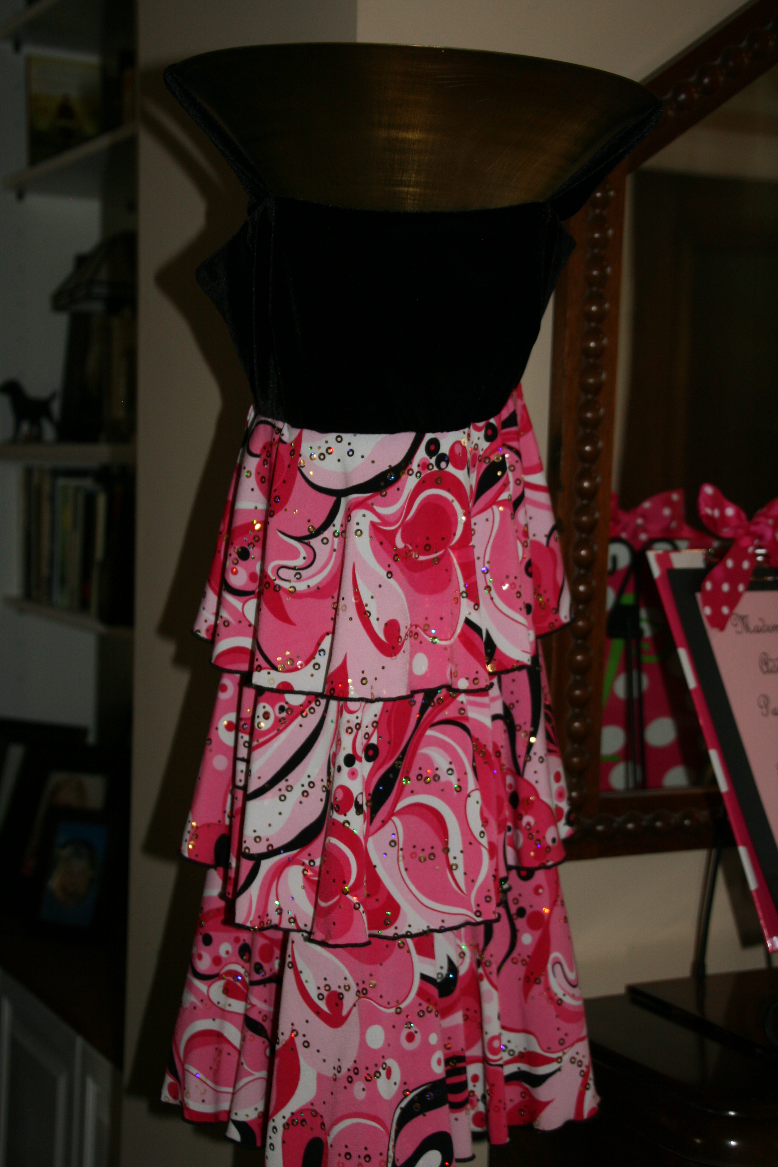 As you entered, I had a display with a couple of items of interest, including the “daily specials”. Since I didn’t have a bodice, I used a floor lamp as a “bodice” to hang a dress from.