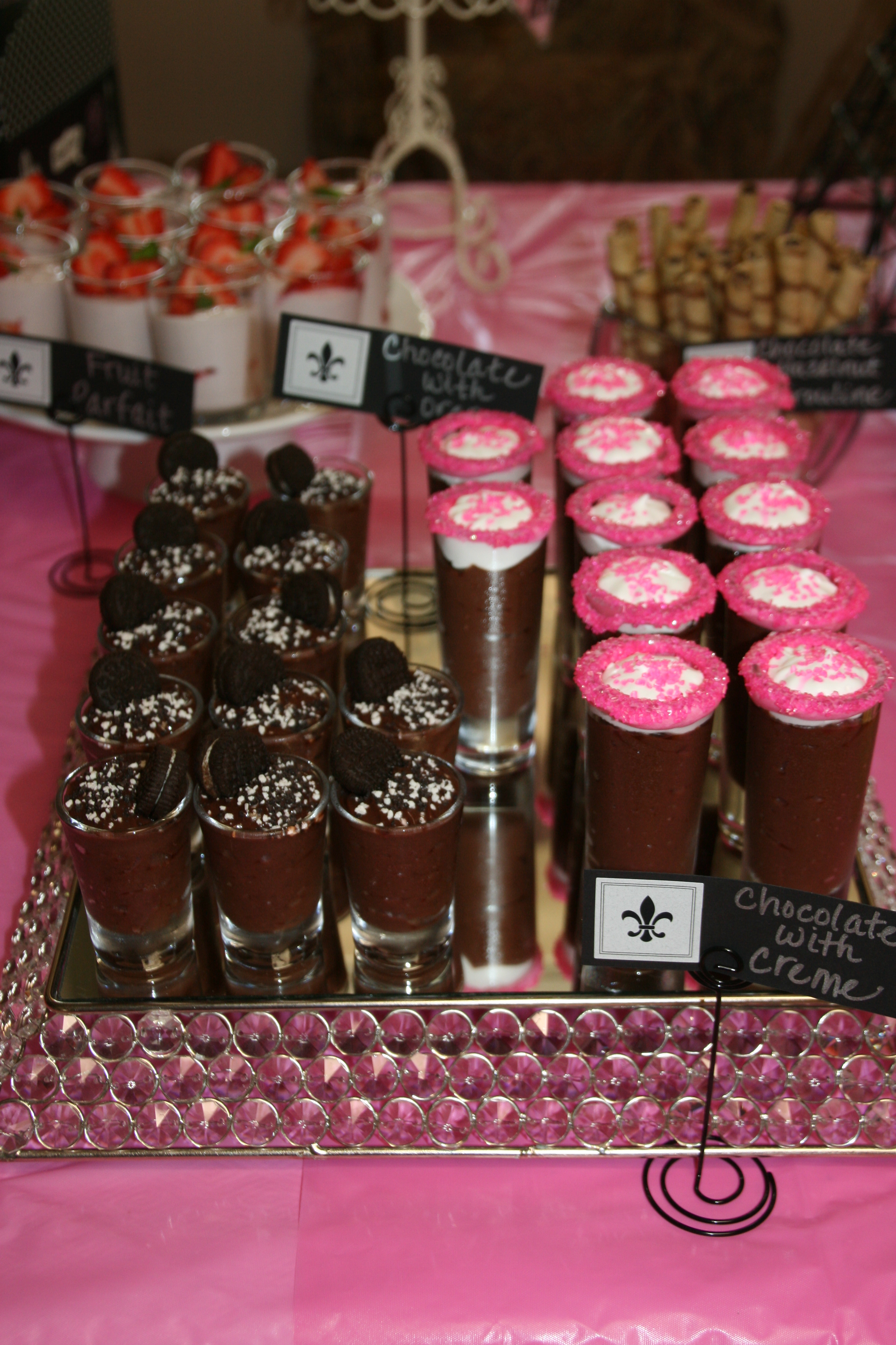 Everything from chocolate mousse (pudding) to parfaits