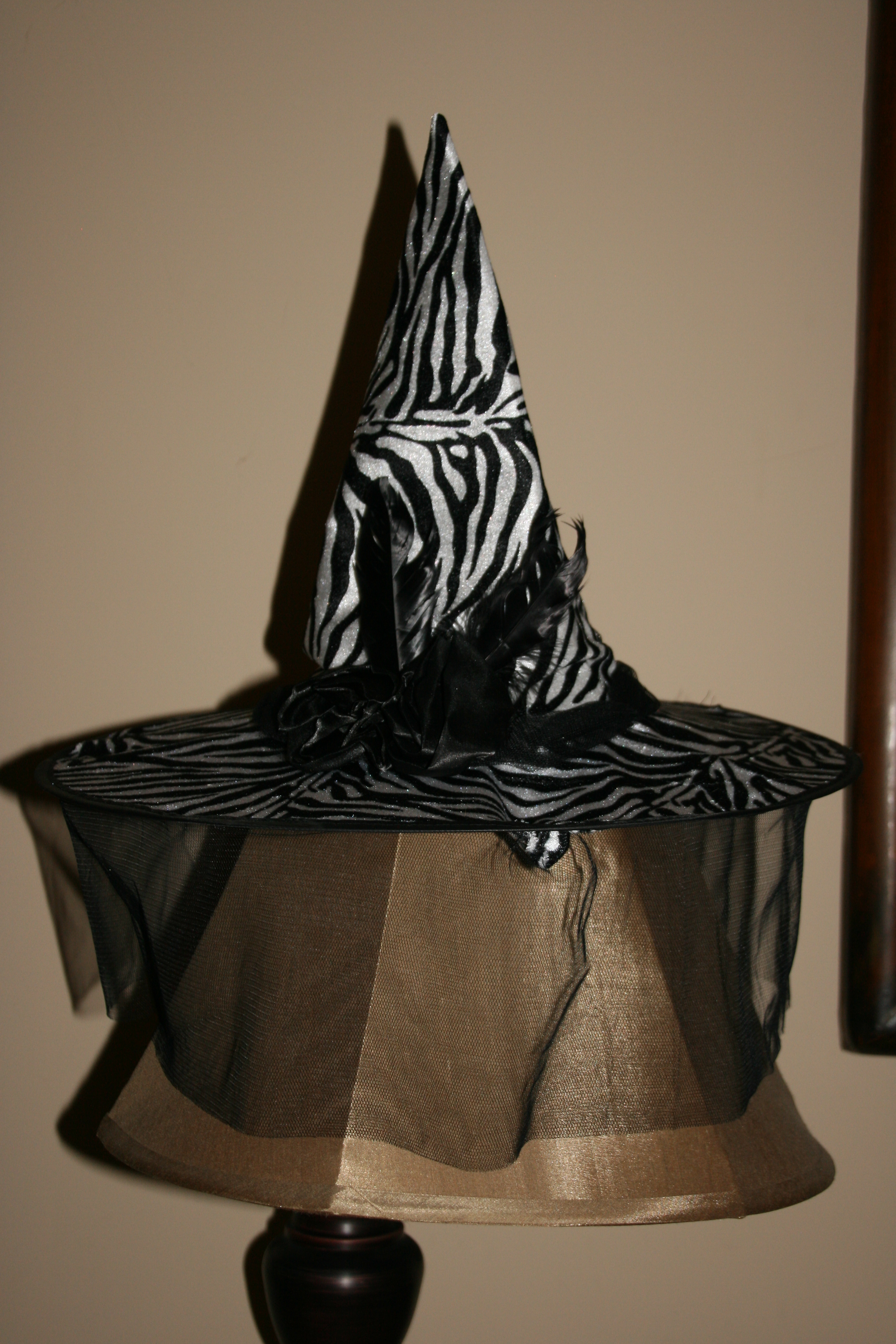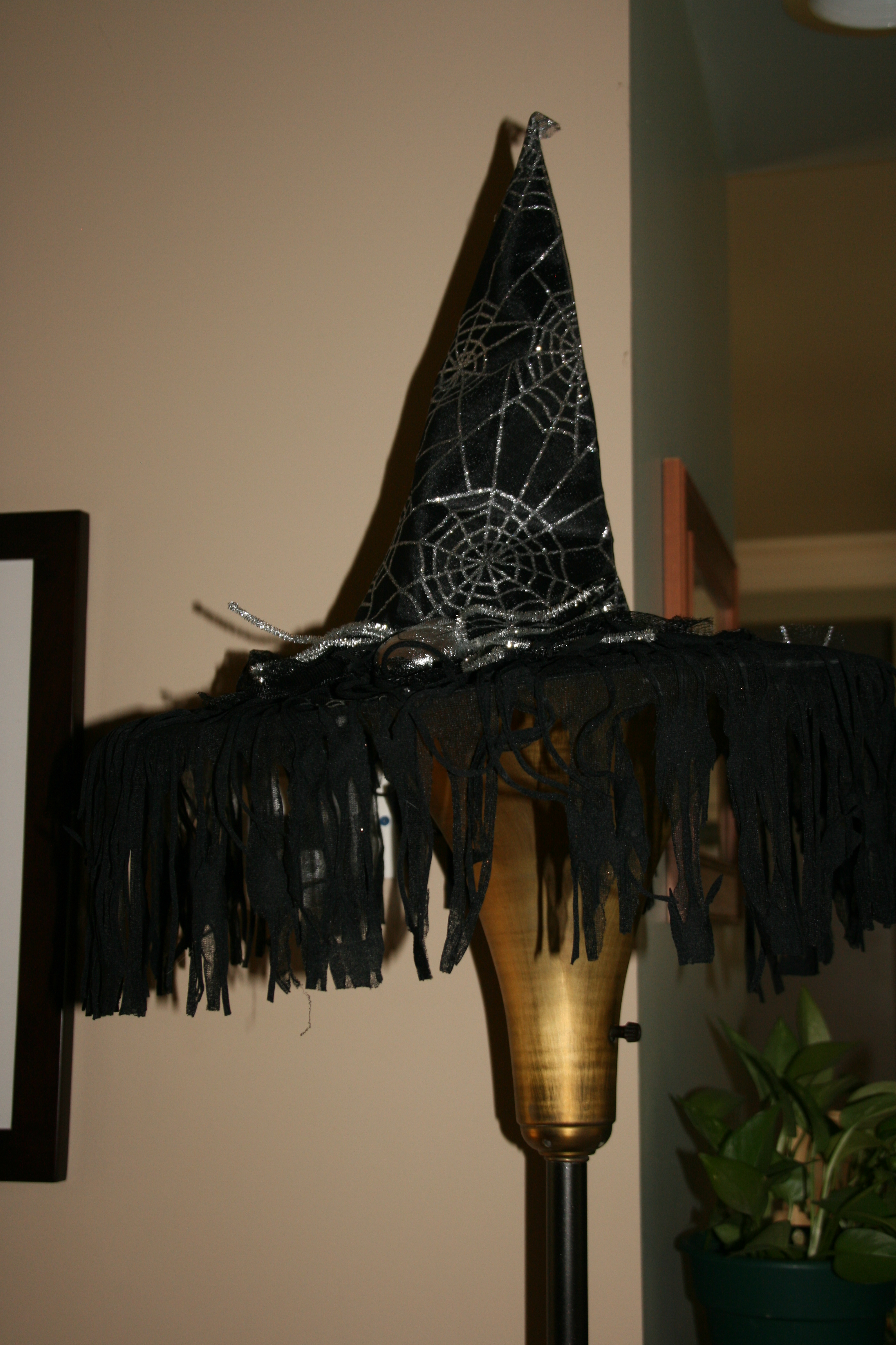 I found these darling witch hats at the 99cent store. They make they perfect “topper” on any lamp!